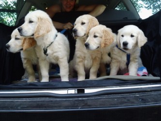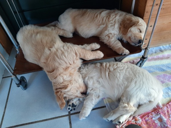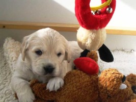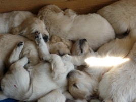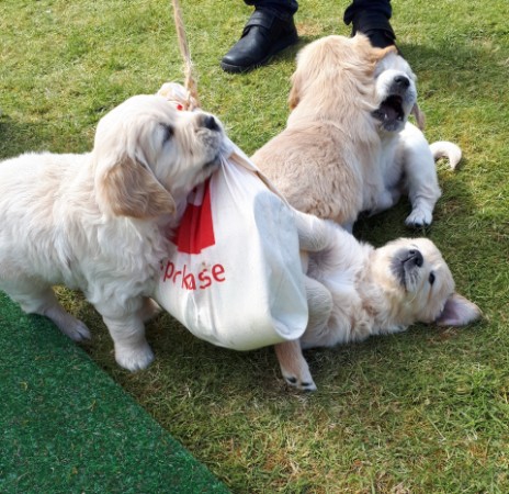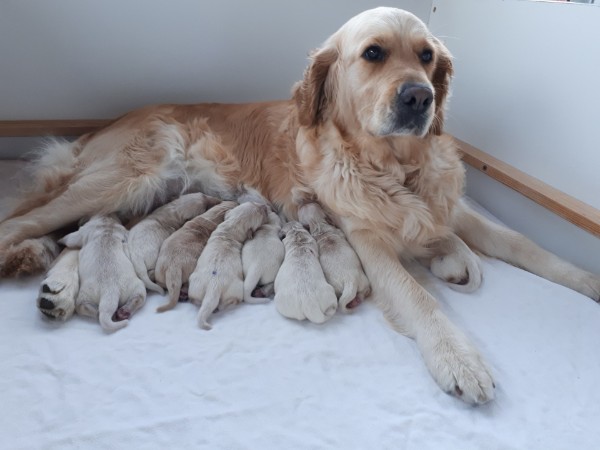 Sehr fröhliche,verspielte und zutrauliche Welpen, sehr schöne typische Köpfe, kräftiger Körperbau, tolle Fellanlage, sehr gutes Pigment, super sozialisiert, ein schöner typischer Golden-Wurf.