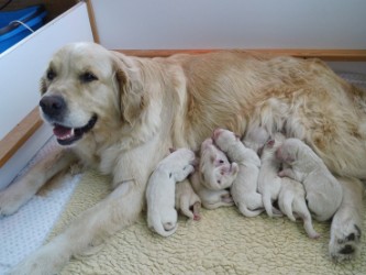 Am 05.05.2015 ist unser N-Wurf aus der Verpaarung Golden Herta-Sue vom Quellenthal & NUCH, DKCH DKV 12 Thevent Energia Positiva geboren.